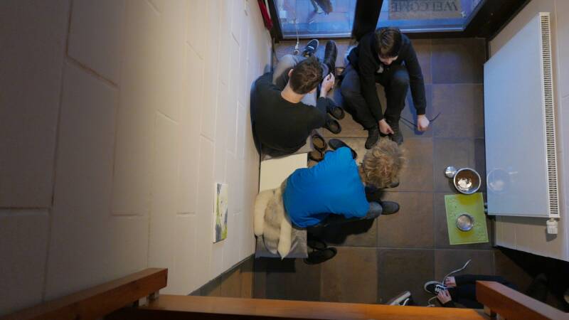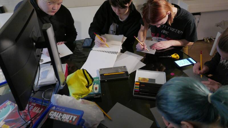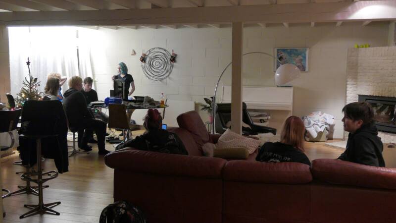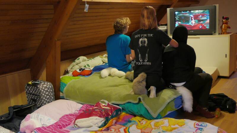 We spend saturday claiming our bed, drawing, going out for a walk and playing some board & cardgames. We also repaired some tails, played wii and one of the members even brought his playstation!? We also spend the day laughing, eating hotdogs as dinner, noodles as midnight snack and trying to get these 3 to get to bed by 5am. Sunday was mostly a lazy day, the animals had trouble getting awake. Coffee, music, eggs&bacon for breakfast. Slowly but surely people started drawing or playing some cardgame and the room became empty.. people were heading home.