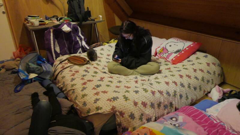 With the entire first floor filled with mattresses and thrashbags scattered through the main floor.. dirty cutlery, mugs and plates.. and soo many stuffed animals.. haha, truely a therian sleepover.